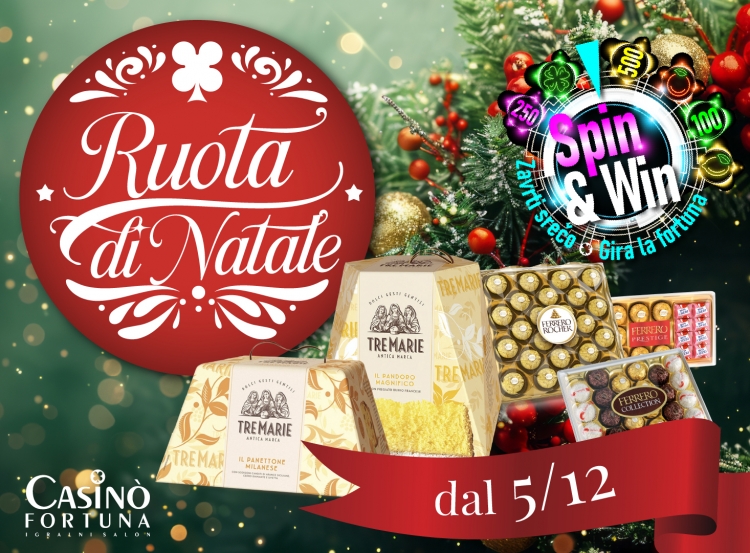 Da venerdì 5 dicembre e per tutto il mese vi aspetta la nostra Ruota di Natale, dove ogni giro può portare a dolcissimi regali Tre Marie, specialità Ferrero e altri premi natalizi.